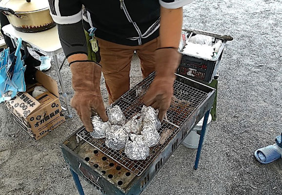 先日地域の社協様よりご寄贈いただいた新鮮なサツマイモ2種を、主任&栄養士が園庭でガンガン焼きだしました。子どもたちは突然の美味しいおやつに大喜び!